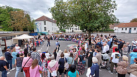 Schon am Mittwochnachmittag feierten die Familien mit den Lehrerinnen in der Klosterkirche einen Einschulungsgottesdienst. Am Donnerstag um 10.00 Uhr gab es dann auf dem Schulhof eine Begrüßungsfeier. Suppi Huhn sang, es gab eine Theater- und eine Tanzaufführung der Schülerinnen und Schüler aus den vierten Klassen, Stammtisch Aul Ssaan verteilte Lebkuchenherzen und natürlich wurde auch das Schullied der Klostermarktschule gesungen. Danach zogen unsere neuen Schülerinnen und Schüler durch ein Spalier der Kinder aus den Jahrgängen 2-4 feierlich in das Schulhaus ein.